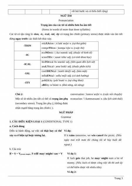 Các từ có tận cùng là -tion, -ic, -ical, -ial, -ity có trọng âm chính (primary stress) được nhấn vào âm tiết