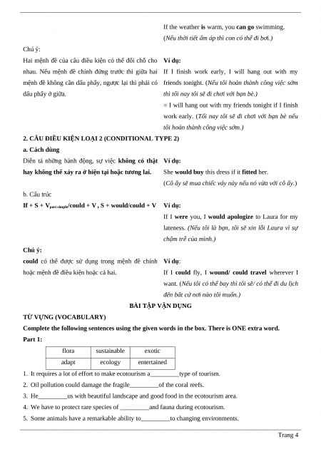 Sử dụng từ vựng liên quan đến tầm quan trọng, lợi ích và nguyên tắc của du lịch sinh thái