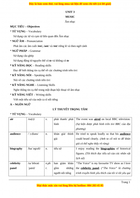 Chuyên đề luyện thi Tiếng anh 10 năm 2023 trường ĐHSP Hà Nội - Unit 3: Music