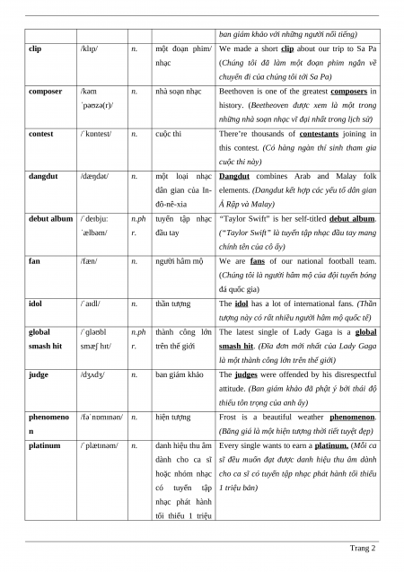 có tuyển tập 1 triệu bản) nhạc phát hành tối thiểu 1 triệu Trang 2 bản pop /pɒp/ n. nhạc đại chúng