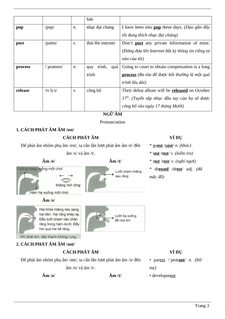 • parent /ˈpeərənt/ n. (bố/ âm /n/ và âm /t/. mẹ) Âm /ə/ Âm /t/ • development Trang 3