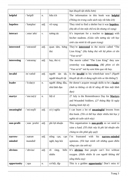 bạn khuyết tật nhiều hơn) helpful /ˈhelpfl/ n. hữu ích