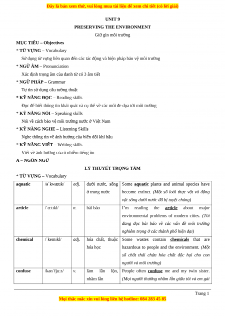 PRESERVING THE ENVIRONMENT Giữ gìn môi trường
