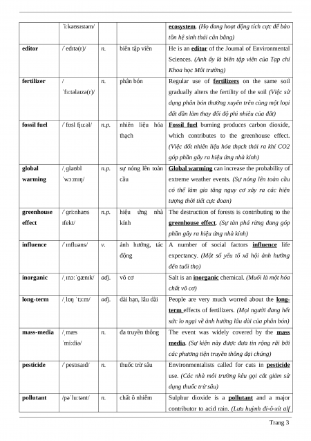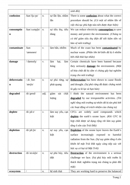 Sử dụng từ vựng liên quan đến các tác động và biện pháp bảo vệ môi trường