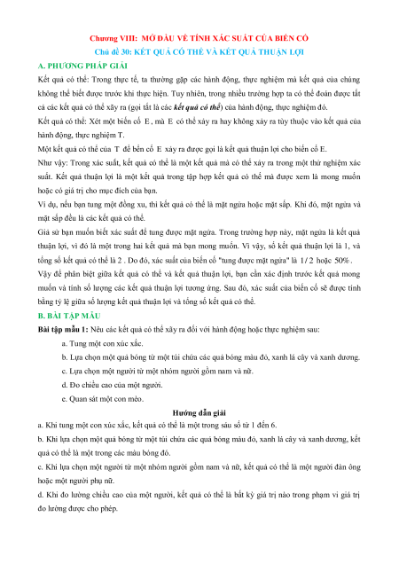 Chương VIII: MỞ ĐẦU VỀ TÍNH XÁC SUẤT CỦA BIẾN CỐ