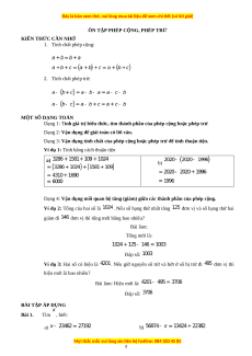 KIẾN THỨC CẦN NHỚ 1. Tính chất phép cộng: 2. Tính chất phép trừ: MỘT SỐ DẠNG TOÁN