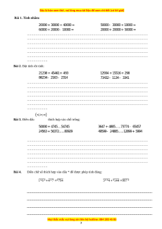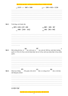 . Nếu giữ nguyên số trừ và bớt ở số bị trừ đi đơn vị thì hiệu mới là bao nhiêu? Bài làm: Hiệu mới là: Đáp số: BÀI TẬP ÁP DỤNG Bài 1. Tìm , biết: a) b)