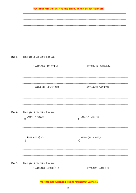 Tính giá trị các biểu thức sau: a) b) c) d) Bài 5.