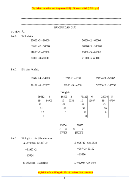 HƯỚNG DẪN GIẢI LUYỆN TẬP Bài 1. Tính nhẩm Bài 2. Đặt tính rồi tính: Lời giải: Bài 3.