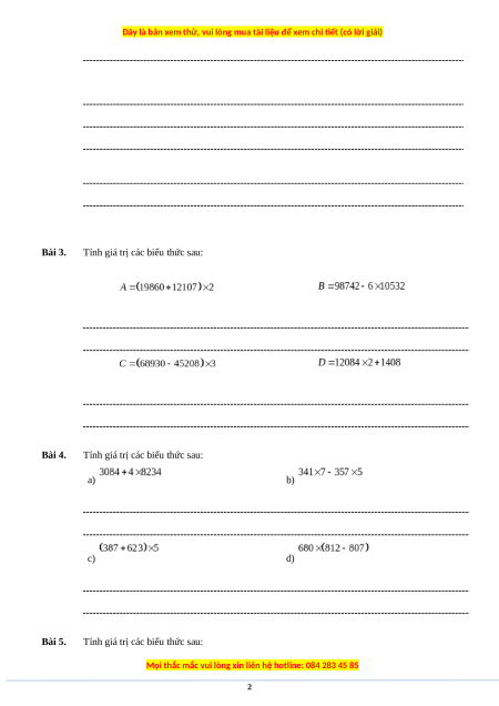 Tính giá trị các biểu thức sau: a) b) c) d) Bài 5.