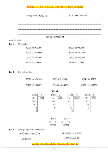 HƯỚNG DẪN GIẢI LUYỆN TẬP Bài 1. Tính nhẩm Bài 2. Đặt tính rồi tính: Lời giải: Bài 3.