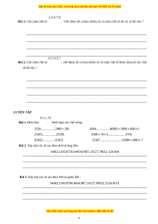, viết được tất cả bao nhiêu số có năm chữ số khác nhau từ các chữ số đã cho ? LUYỆN TẬP Bài 1. Điền dấu