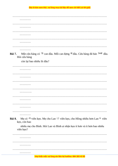 Bài 7. Một cửa hàng có can dầu. Mỗi can đựng dầu. Cửa hàng đã bán dầu.