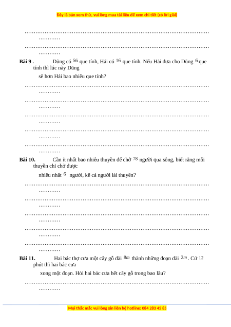 Bài 6. Một đội công nhân có người phải sửa đường. Hỏi: