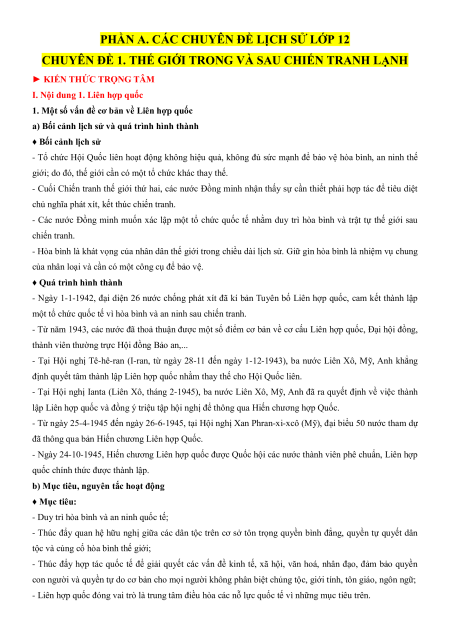 PHẦN A. CÁC CHUYÊN ĐỀ LỊCH SỬ LỚP 12