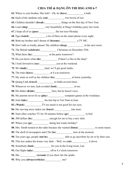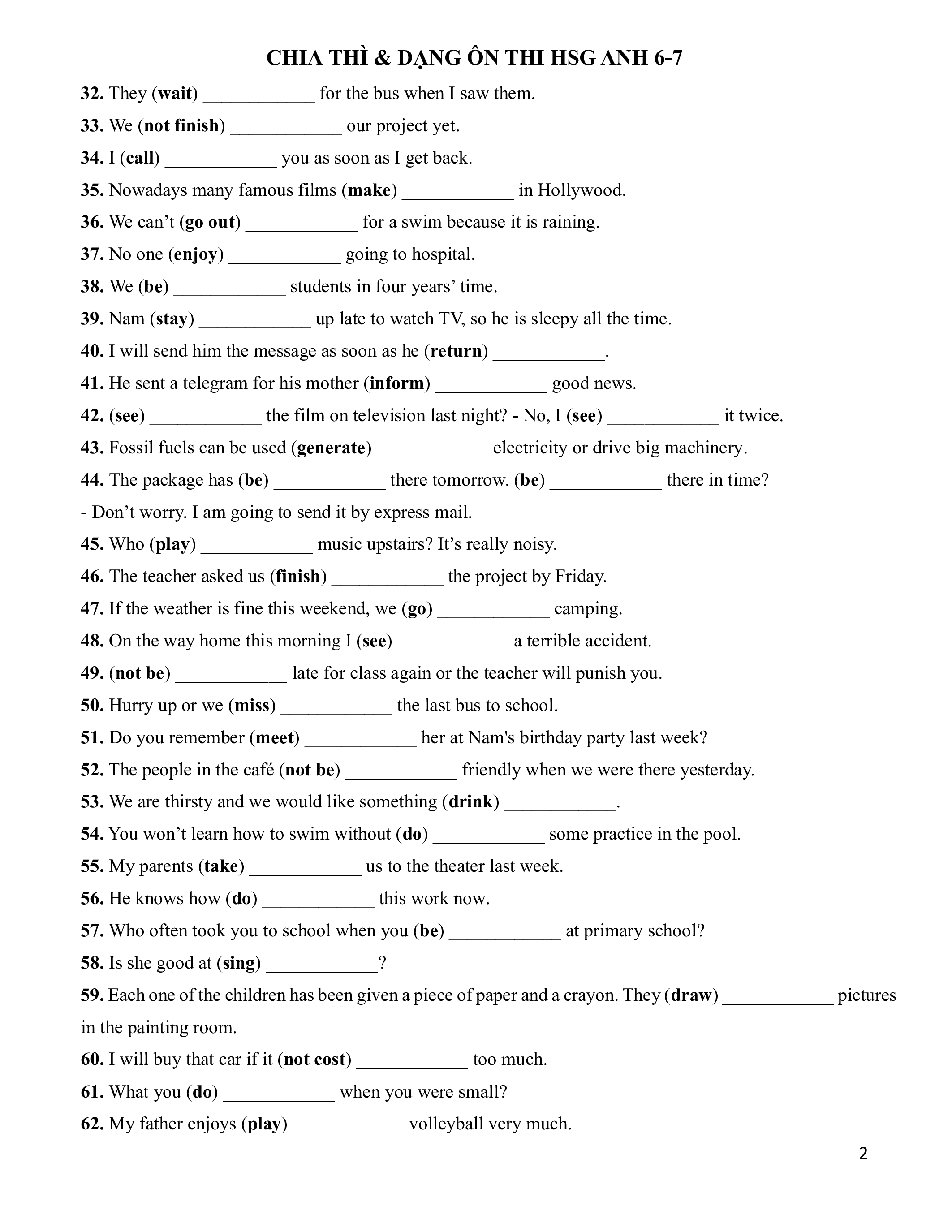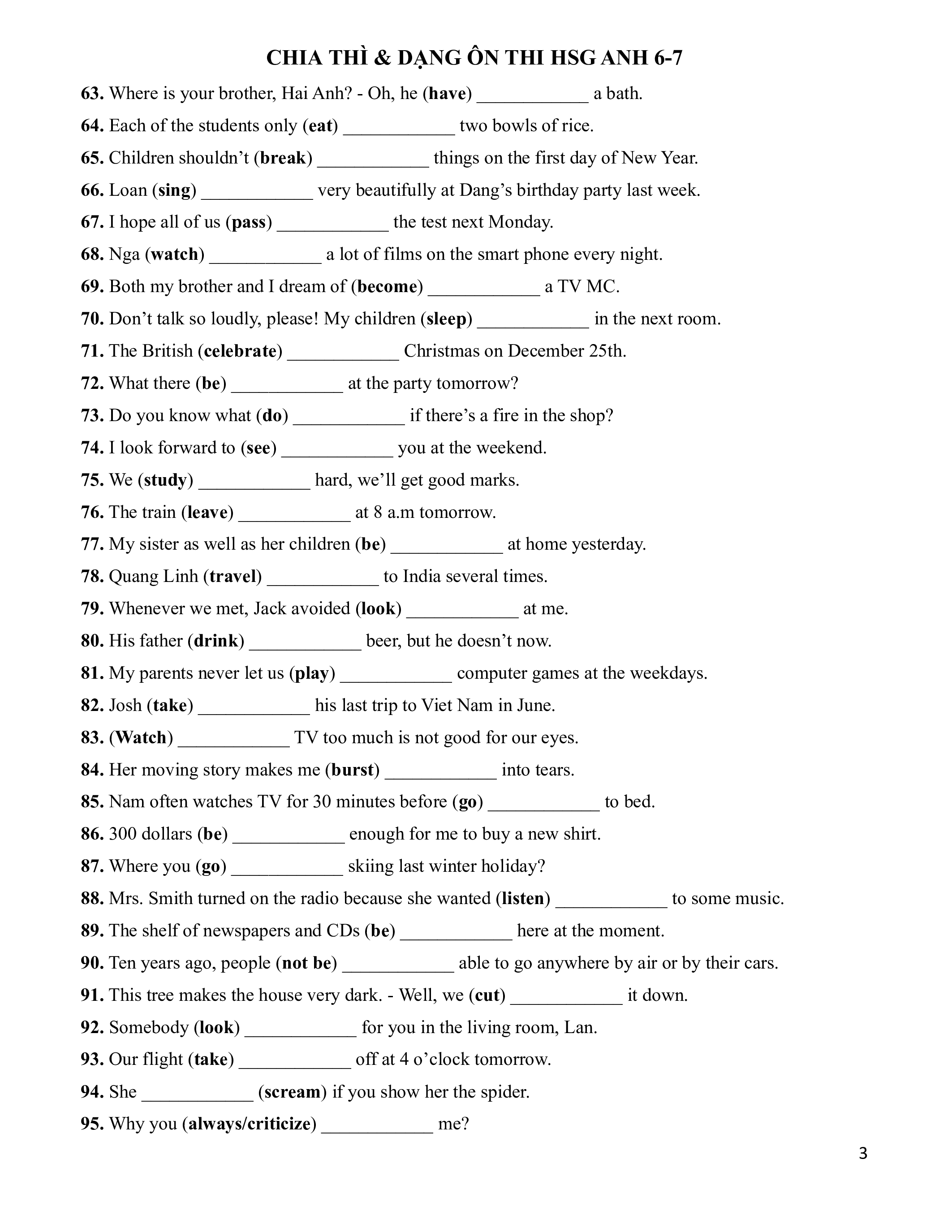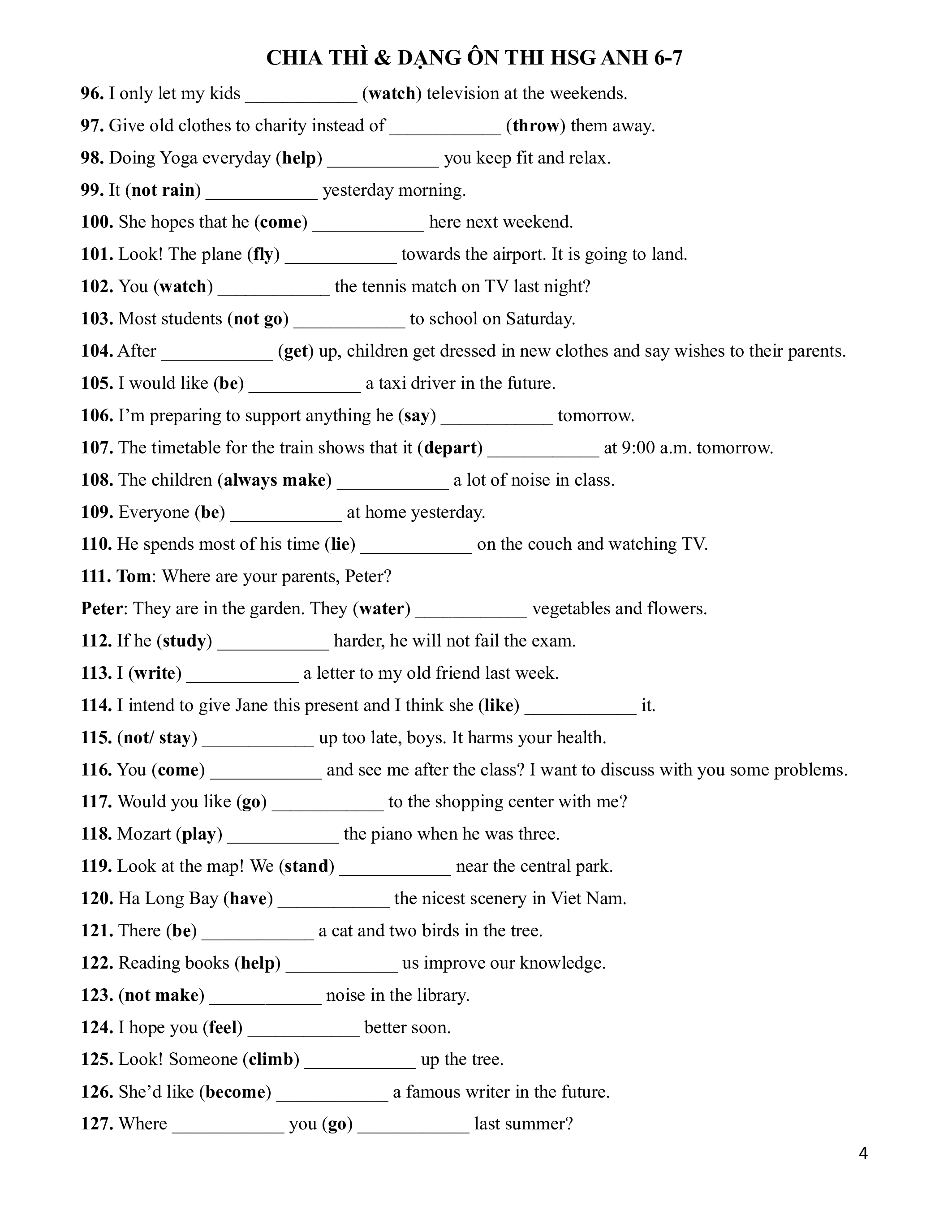 CHIA THÌ & DẠNG ÔN THI HSG ANH 6-7
