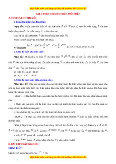 BÀI 5: PHÉP CHIA ĐA TH C Ứ M T Ộ BI N Ế A. TÓM T T Ắ LÝ THUY T Ế 1. Chia đ n ơ th c ứ cho đ n ơ th c ứ : *Quy t c ắ : Mu n ố chia đ n ơ th c ứ A cho đ n ơ th c ứ B ( B 0 ) khi số mũ c a ủ bi n ế trong A l n ớ h n ơ hoặc bằng s m ố ũ c a ủ bi n t