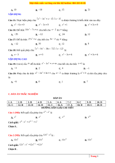 x 9x 30x 72 : x 12 Câu 18: Kết quả phép chia là: A. x 3 B. x 3 C. 2 x 3x 6 D. 2 x 3x 6 V N Ậ DỤNG CAO Câu 19: Giá trị c a