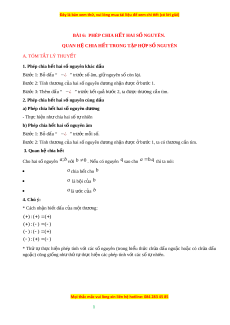 BÀI 6: PHÉP CHIA H T Ế HAI SỐ NGUYÊN. QUAN HỆ CHIA H T Ế TRONG T P Ậ H P Ợ S N Ố GUYÊN A. TÓM TẮT LÝ THUY T Ế 1. Phép chia h t h ế ai s n ố guyên khác d u ấ