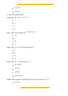 ố 24 có tất cả bao nhiêu ước? A. 8 B. 12 C. 16 D. 24 Câu 9. _TH_ S ố 4 là ư c ớ c a ủ các s ….? ố 0; 24;3 0 A. 4 ; 1 6 B. 3 0; 6 4 C. 0; 4 2; 1 0 0 D.