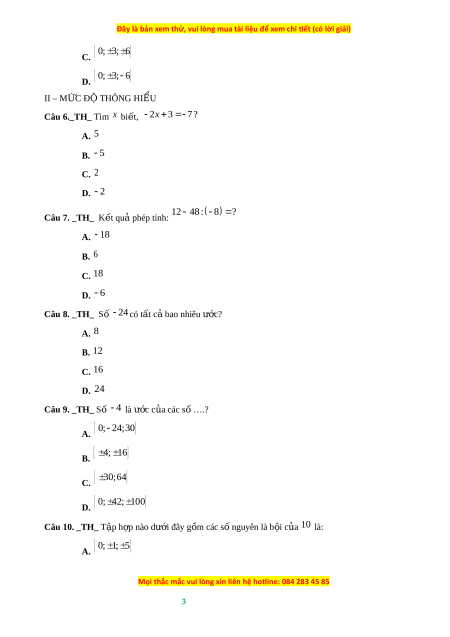 Câu 10. _TH_ T p h p nào d i đây g m các s nguyên là b i c aậ ợ ướ ồ ố ộ ủ