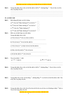 Bài 6. Trong một phép chia có dư, lấy số bị chia trừ đi tích của số chia và số thương ta được đơn vị.