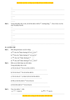 Bài 6. Trong một phép chia có dư, lấy số bị chia trừ đi tích của số chia và số thương ta được đơn vị.