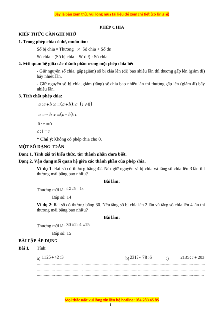 * Chú ý: Không có phép chia cho 0. MỘT SỐ DẠNG TOÁN