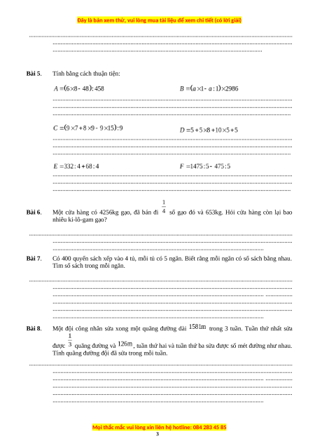 Bài 6. Một cửa hàng có 4256kg gạo, đã bán đi số gạo đó và 653kg. Hỏi cửa hàng còn lại bao