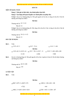 thương mới bằng bao nhiêu? Bài làm: Thương mới là: Đáp số: 15 BÀI TẬP ÁP DỤNG Bài 1. Tính: a) b) c)