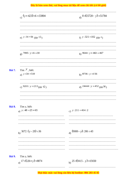 ………………………………………………… Bài 9. Tìm y, biết: a) b)