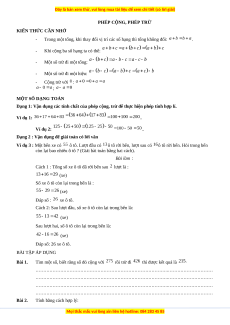 Dạng 1: Vận dụng các tính chất của phép cộng, trừ để thực hiện phép tính hợp lí. Ví dụ 1: . Ví dụ 2: .