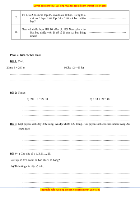 Phần 2. Giải các bài toán: