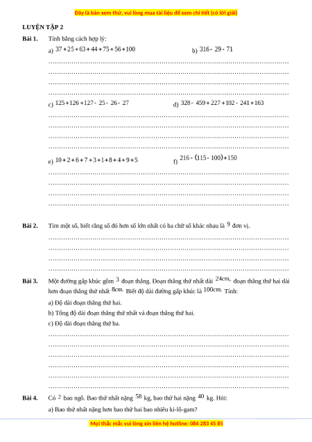 Bài 2. Tính bằng cách hợp lý: