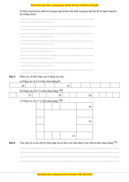 Bài 5. Điền các số thích hợp vào ô trống sao cho: