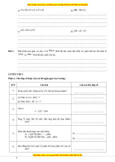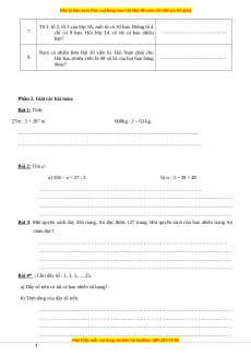 Sau lượt hai, số ô tô còn lại trong bến là: (xe) Đáp số: 26 xe ô tô. BÀI TẬP ÁP DỤNG Bài 1.
