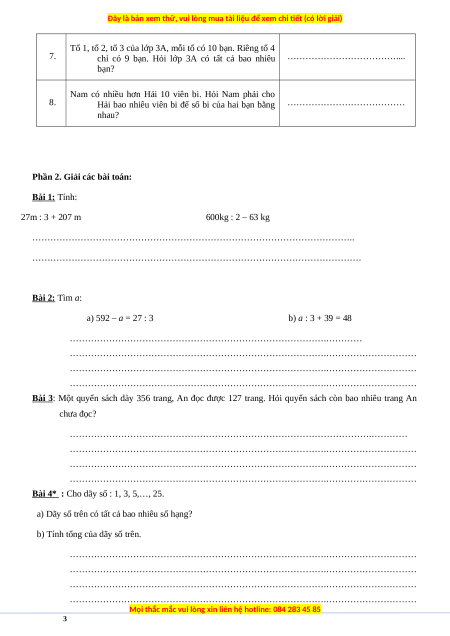 Bài 3: Một quyển sách dày 356 trang, An đọc được 127 trang. Hỏi quyển sách còn bao nhiêu trang An