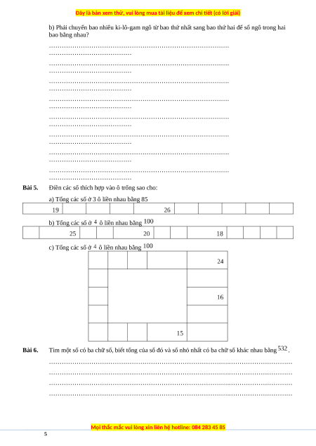 Bài 5. Điền các số thích hợp vào ô trống sao cho: