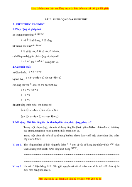 BÀI 2. PHÉP CỘNG VÀ PHÉP TRỪ