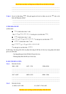 c) Mối quan hệ giữa phép cộng và phép trừ. thì và ngược lại. 2. Các tính chất: a) Giao hoán: b) Kết hợp: