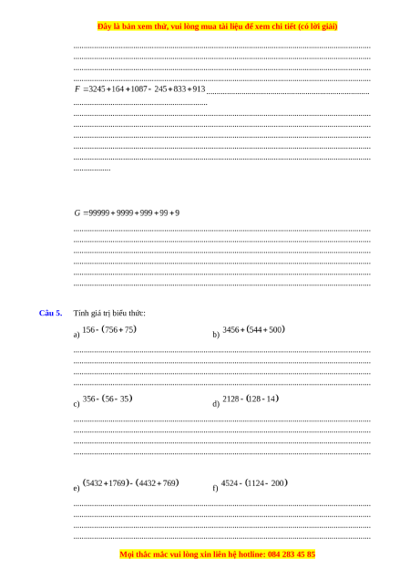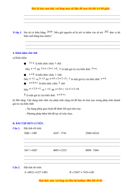 Chuyên đề Phép cộng và phép trừ Toán lớp 4 nâng cao