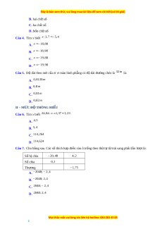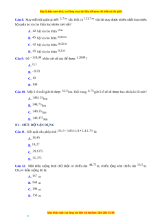 B. 45 bộ và còn th a ừ 0,02 m C. 42 b và ộ còn th a ừ 0,02 m D. 45 b và ộ còn th a ừ 0, 2 m Câu 9. S ố 128,09 nhân v i ớ s nà ố o đ đ ể ược 1, 2809 ? A. 0,1 B. 0, 01 C. 10 D. 100 Câu 10. M t ộ ô tô m i ỗ gi đi ờ được 52,5 km. H i