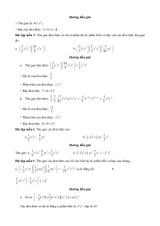 + Bậc đơn thức: 7 6 13 5 2 7 1 1 b. Thu gọn đơn thức: 3 4 4 2 3 3 4 1 4 2 3 8 9 . . x x xy y y x y x y . 7 3 10 3 3