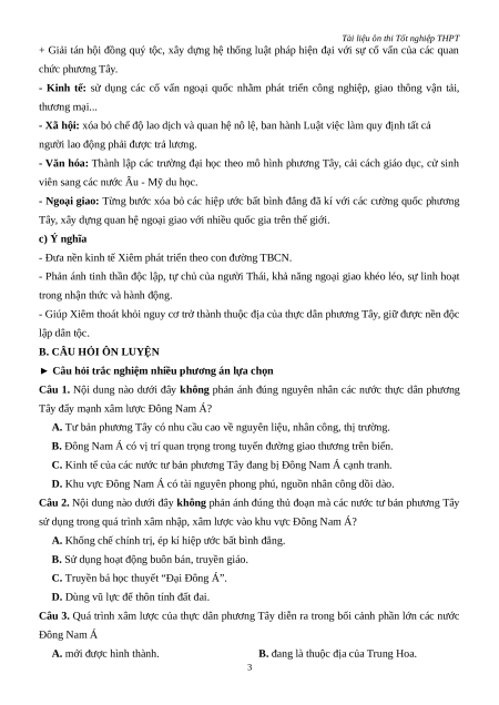 Câu 3. Quá trình xâm lược của thực dân phương Tây diễn ra trong bối cảnh phần lớn các nước Đông Nam Á