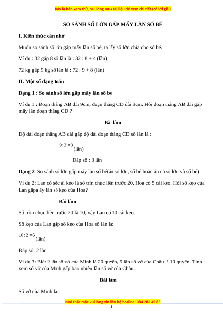 SO SÁNH SỐ LỚN GẤP MẤY LẦN SỐ BÉ