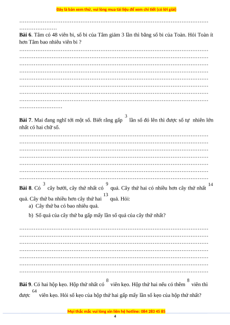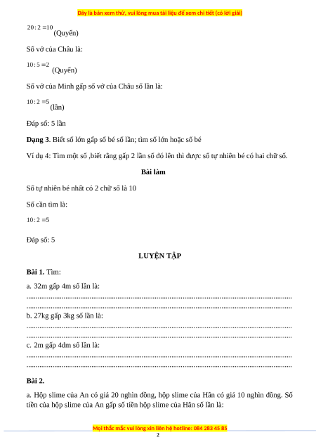 Dạng 3. Biết số lớn gấp số bé số lần; tìm số lớn hoặc số bé