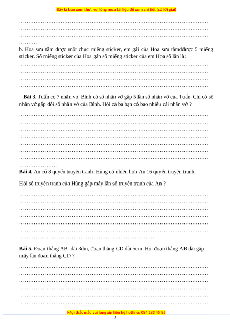 Chuyên đề số lớn gấp mấy lần số bé Toán lớp 3 nâng cao Chân trời sáng tạo