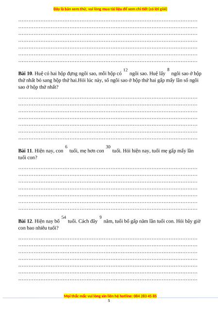 Bài 11. Hiện nay, con tuổi, mẹ hơn con tuổi. Hỏi hiện nay, tuổi mẹ gấp mấy lần