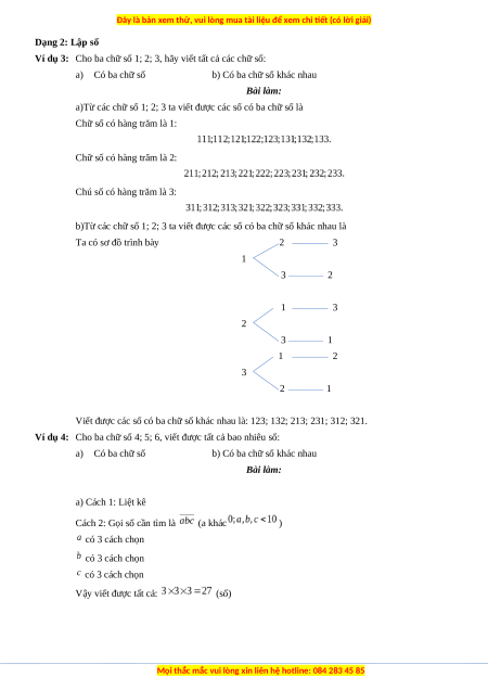 Ví dụ 3: Cho ba chữ số 1; 2; 3, hãy viết tất cả các chữ số: