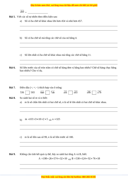 Bài 3. Cho ba chữ số 3 ; 5 ; 7, viết được tất cả bao nhiêu số :